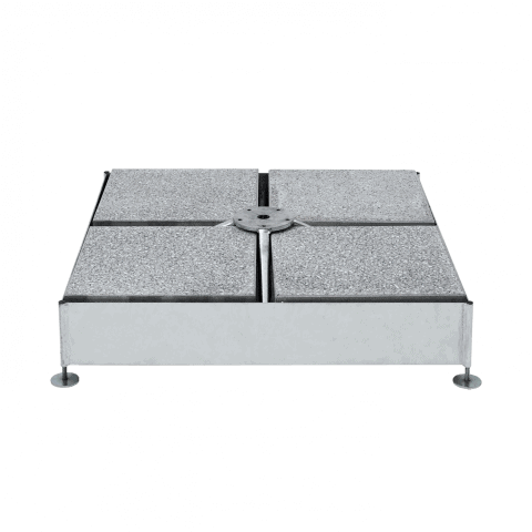 Unsere robusten und langlebigen Stahlsockel sind vielfältig einsetzbar und mit Standartgartenplatten aus dem Baumarkt oder mit Platten in Granitoptik zu bestücken. Für 12 Platten 40 × 40 × 4 cm, 91 × 91 × 15.5 – 19.5 cm, Stahl verzinkt (justierund nivellierbar), (Preis ohne Betonelemente)